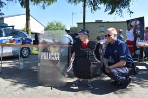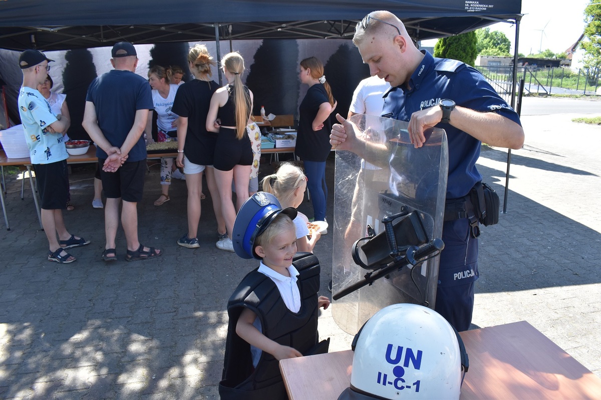Podczas pikniku nie zabrakło atrakcji dla najmłodszych uczestników. Każdy z nich mógł na chwile wcielić się w policjanta i usiąść za kierownicą radiowozu. Chętni mogli fizycznie wcielić się i ubrać policyjny strój, który wykorzystywany jest głównie do zabezpieczenia imprez masowych w tym spotkań piłkarskich. Była to niezwykła frajda dla dużych jak i tych trochę mniejszych uczestników festynu.