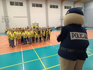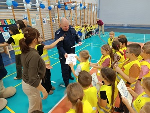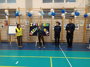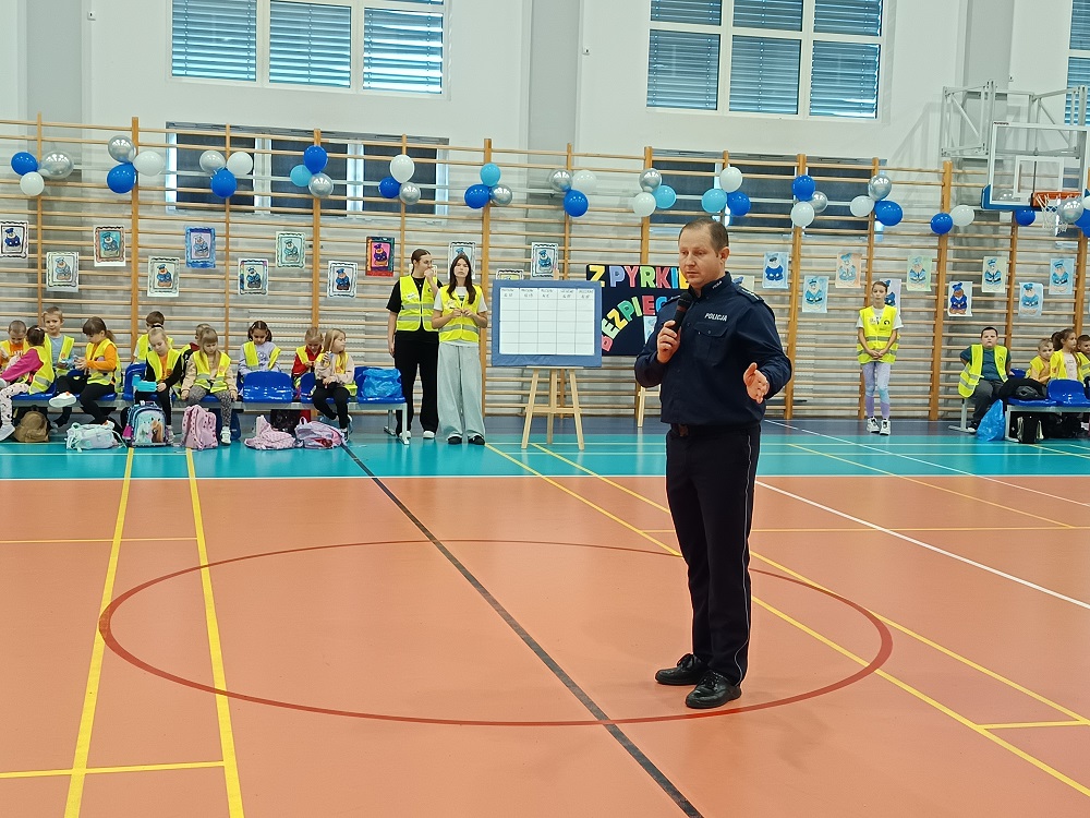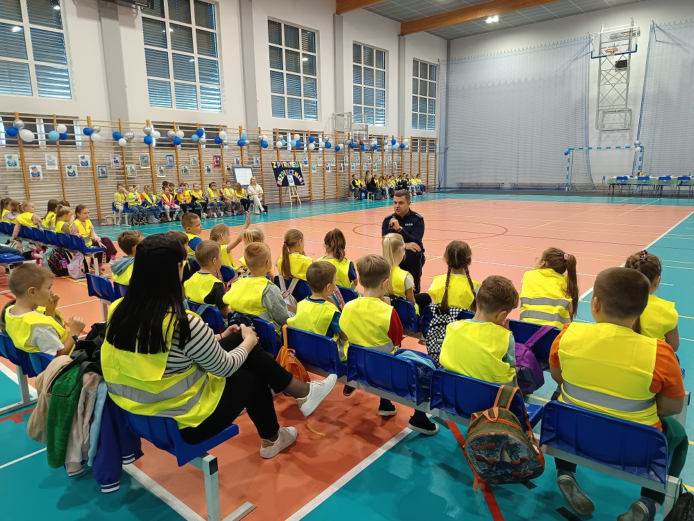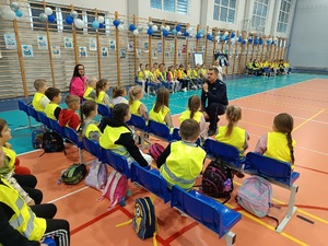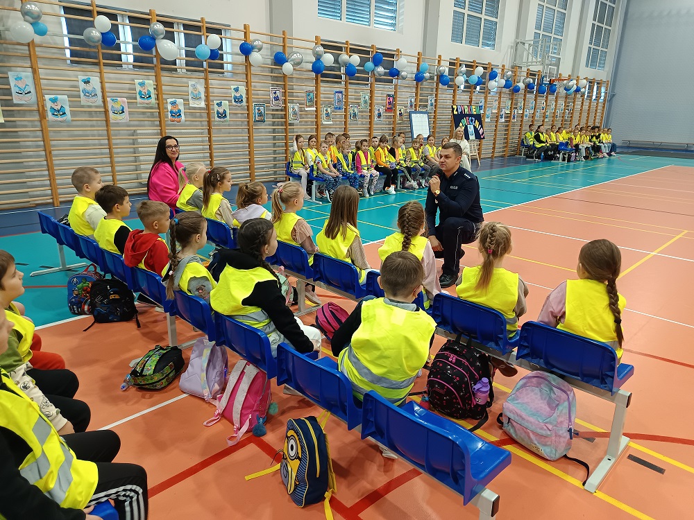 Policjanci omówili zasady bezpiecznego poruszania się po drodze oraz jak z niej korzystać w sposób właściwy. Ważnym aspektem tej edukacyjnej pogadanki było przekonanie uczniów do tego, że swoją postawą w myśl przekazanych rad profilaktycznych mają bardzo duży wpływ na bezpieczeństwo.