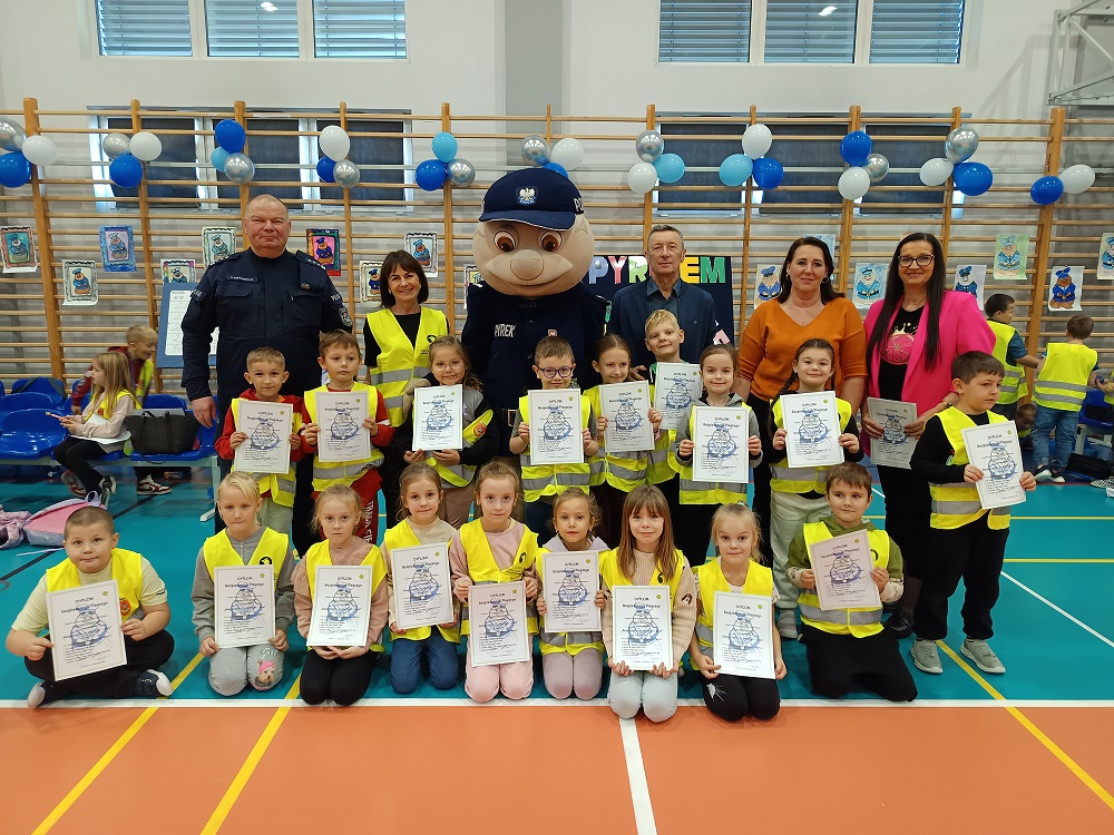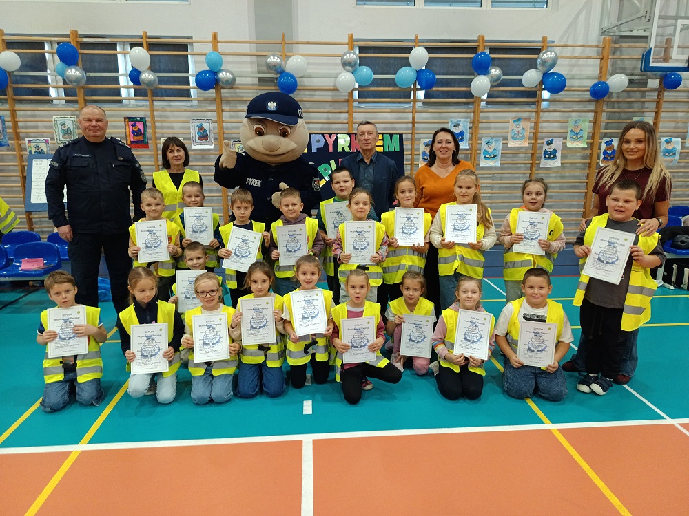 Sierżant Pyrek wspólnie z policjantami z Poznania oraz z Wrześni już po raz 21 odwiedził Samorządową Szkołę Podstawową w Orzechowie. W ramach akcji „Z Pyrkiem bezpieczniej” każdy pierwszoklasista otrzymał „dyplom bezpiecznego pieszego”. Od teraz każdy z nich może być wzorem do naśladowania. Pamiętajcie noszenie odblasków to nie wstyd.
