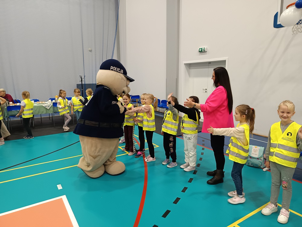 Sierżant Pyrek, natomiast zaprosił wraz z gronem pedagogicznym pierwszoklasistów do konkurencji edukacyjno sprawnościowych. I będąc już w sportowym klimacie najwyższy wielkopolski policjant poderwał wszystkich do zbiorowego tańca, bo jak to się potocznie mówi „w zdrowym ciele, zdrowy duch”.