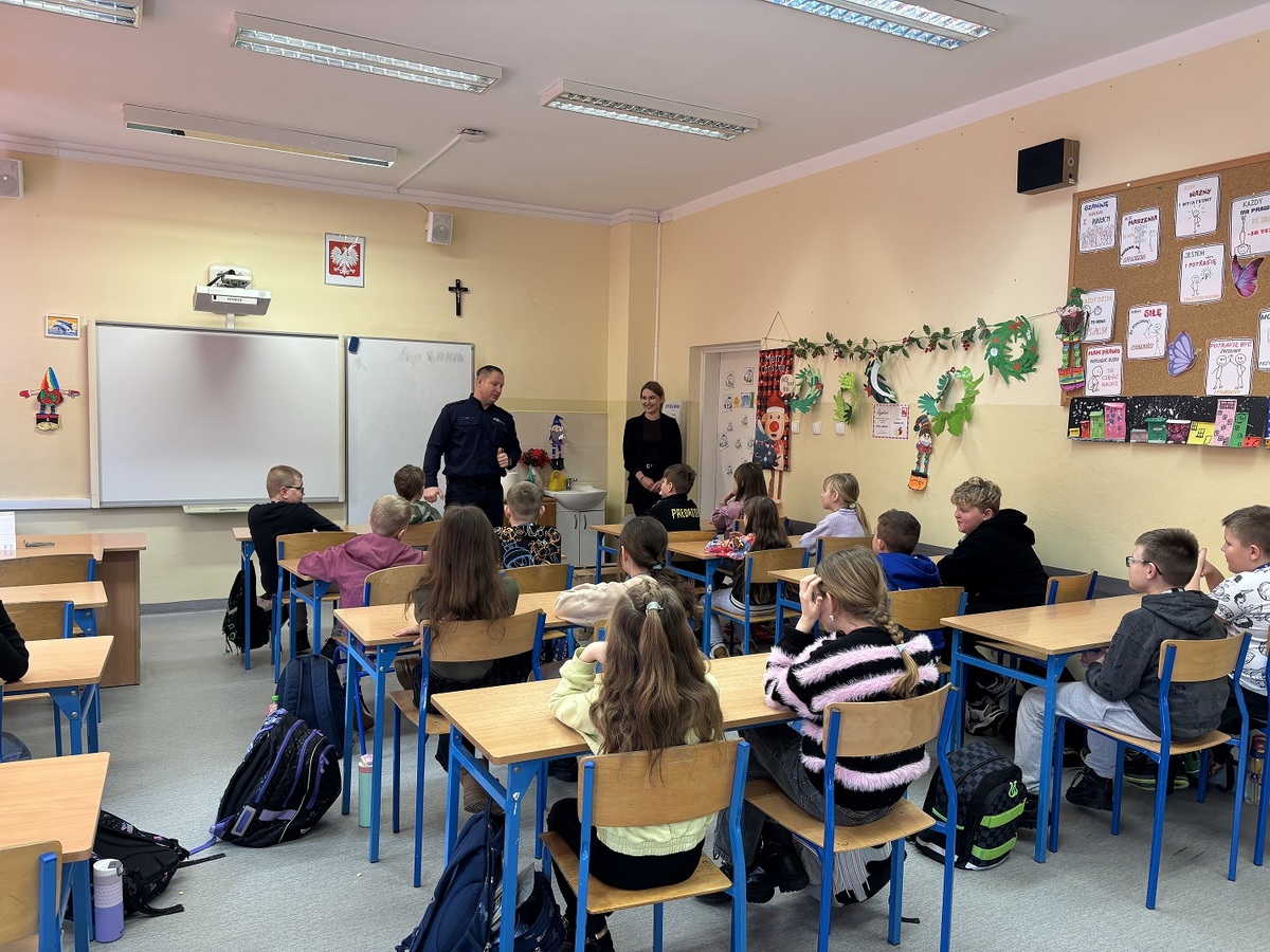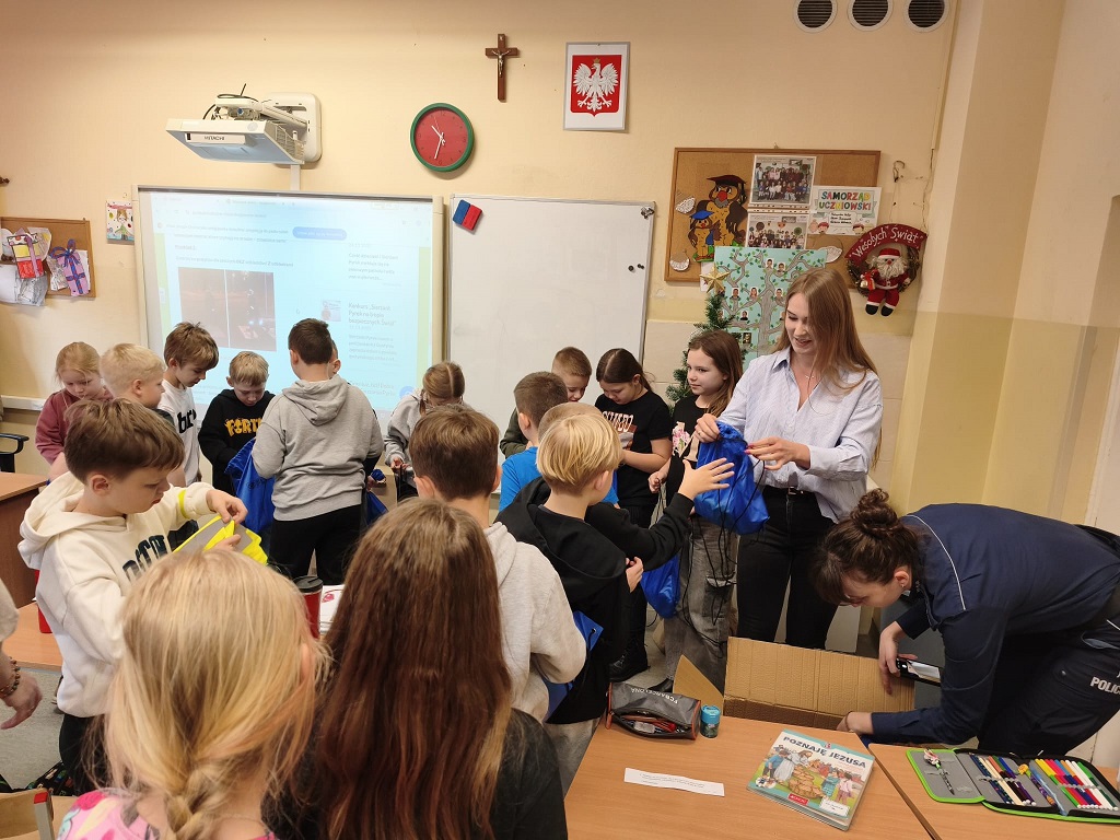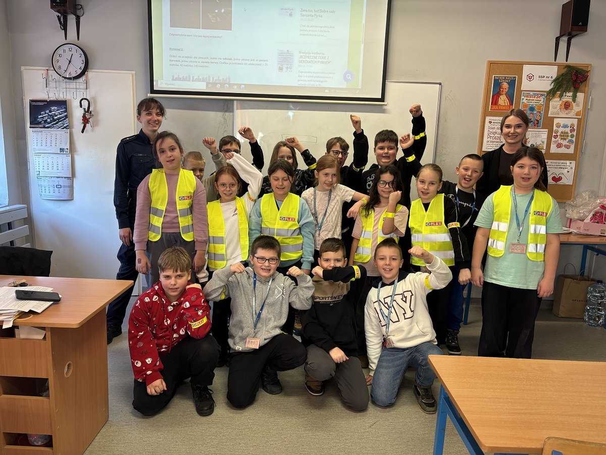 Nie zabrakło, również rozmów na temat zbliżających się ferii zimowych, które na terenie województwa wielkopolskiego zaczynają się od 16 lutego. Uczniowie dowiedzieli się jak bezpiecznie spędzać czas wolny, jak unikać zagrożeń oraz dbać o siebie i innych podczas aktywności zimowych.