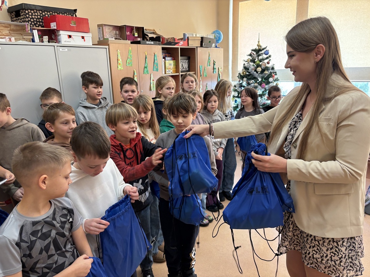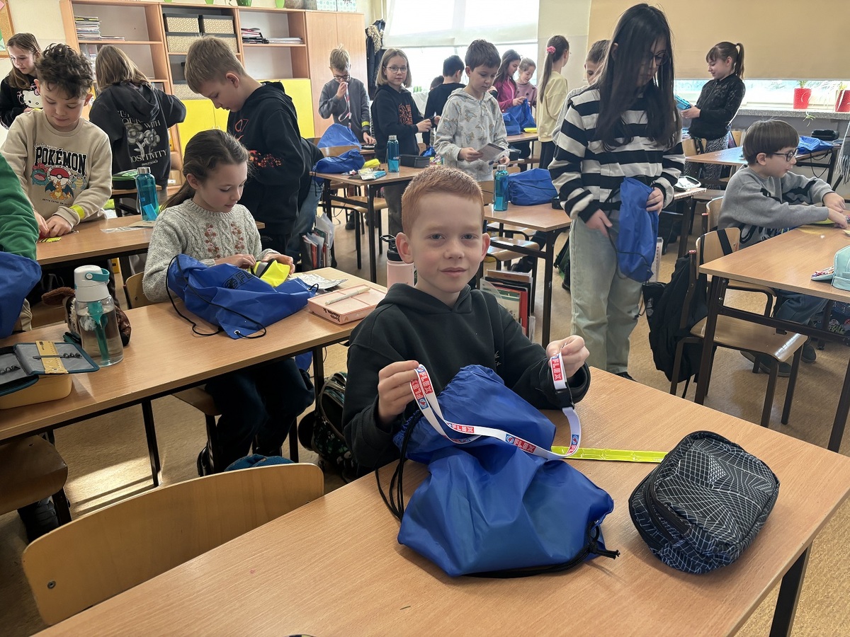 Na zakończenie spotkań dzieci otrzymały od firmy Flex zestaw gadżetów, w których znalazły się między innymi elementy odblaskowe, które od razu zamontowali do swoich plecaczków, zwiększając tym samym swoje bezpieczeństwo na drodze. Te elementy znacząco poprawiają widoczność naszych pociech, a ich rola nabiera znaczenia w szczególności w okresie jesienno-zimowo-wiosennym.