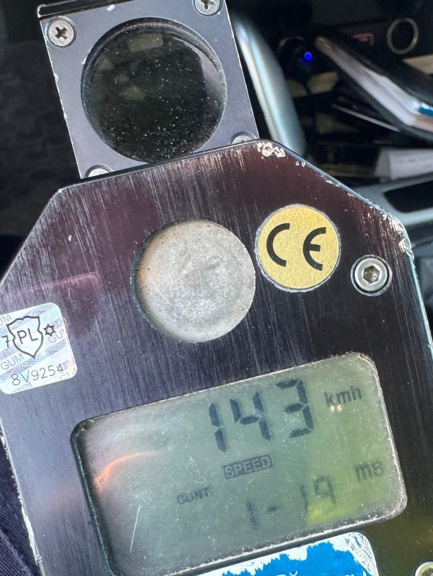 Policjantom z Wydziału Ruchu Drogowego na urządzeniu pomiarowym wyświetlił się wynik 143 km/h. Należy zaznaczyć, że na tym odcinku drogi obowiązuje ograniczenie do 50 km/h czyli prędkość została przekroczona o 93 km/h.